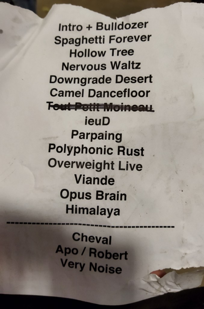 Si torna in sella con la fisarmonica tzigana di Cheval, gli spettatori battono le mani a tempo in un impeto nazionalpopolare e il cantante fa roteare il microfono come un Roger Daltrey coperto di borchie. Apopathodiaphulatophobie spiazza con la sua chitarra pulita ma comunque abrasiva, poi Igorrr sgombera il palco a suon di electro-grugniti polverizzati dal ring modulator di Robert, ma le fiere si ribellano e con un urlo lacerato riconquistano il proscenio per un headbanging dionisiaco collettivo.