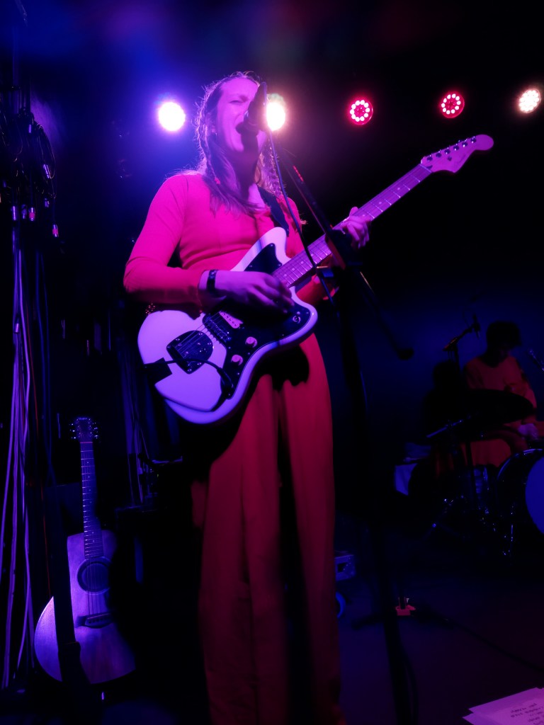 Irrobustito da schitarrate surf, il chamber soul di A Common Tern scalda quanto basta per foderare il momento più emozionante della serata. Raggiunta sul palco da Iona, anche lei costretta a conformarsi al vermiglio monocromatismo, Anna ci informa che non suona mai bis (finalmente qualcuno osa ribellarsi a certe inveterate consuetudini!) e che il prossimo sarà l’ultimo brano. E non è una canzone come le altre: è la sua preferita, The Orange, un esercizio che le ha insegnato ad “amare se stessa amando i suoi amici e la sua famiglia”, esortandoci ad abbracciare i nostri vicini in una gioiosa secolarizzazione del segno di pace liturgico. Tanta intensità non le impedisci di concedersi un fischiettio sbarazzino, prima di congedarsi senza troppe cerimonie.